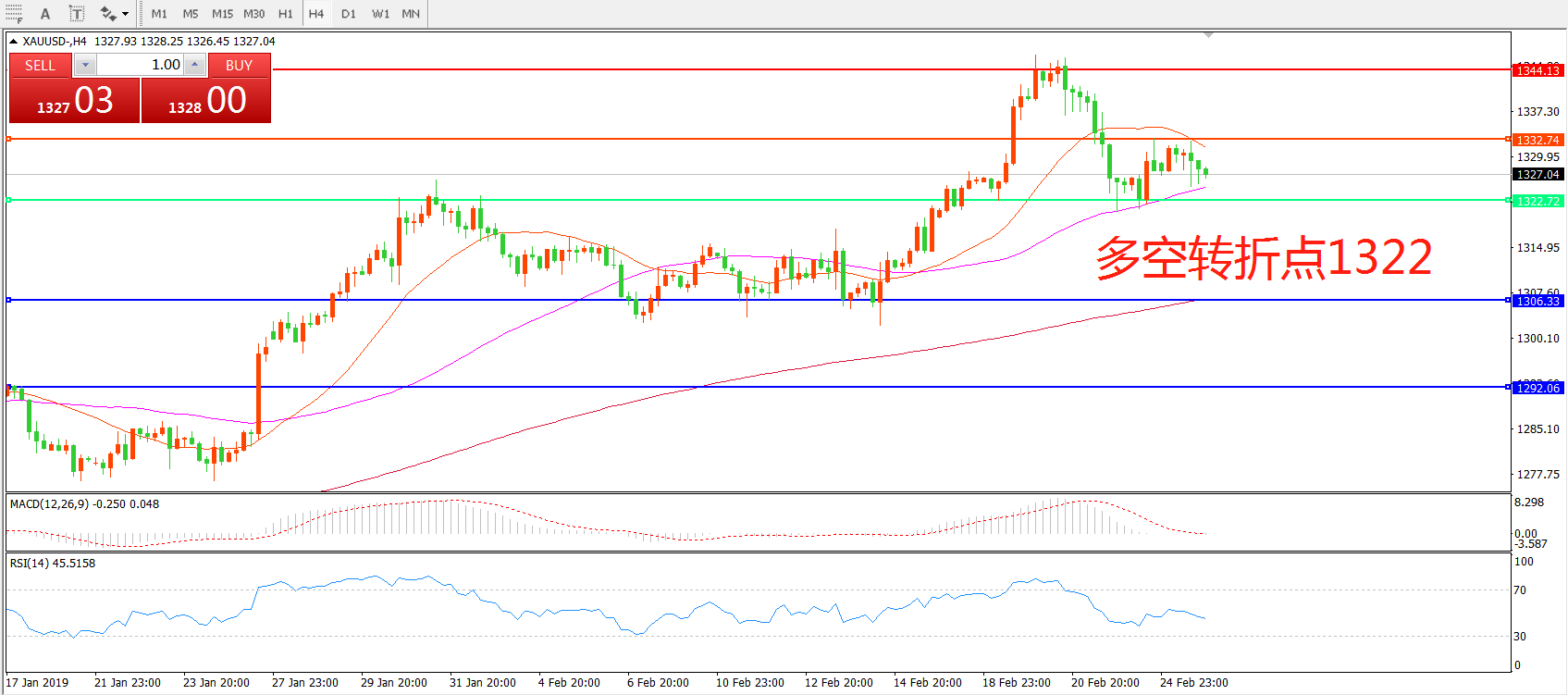 多空转折点:1322.00