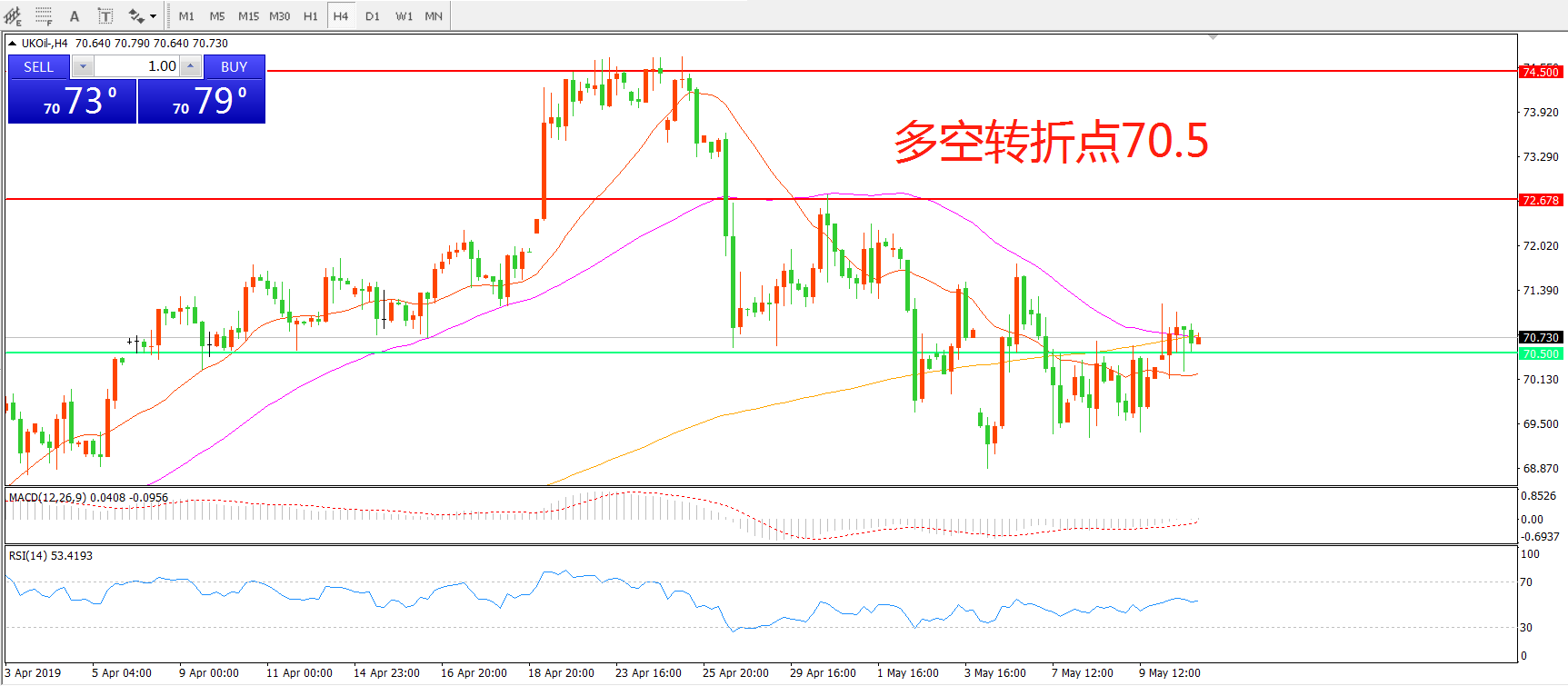 交易策略:在70.50之下看跌,目标68.50    66.00