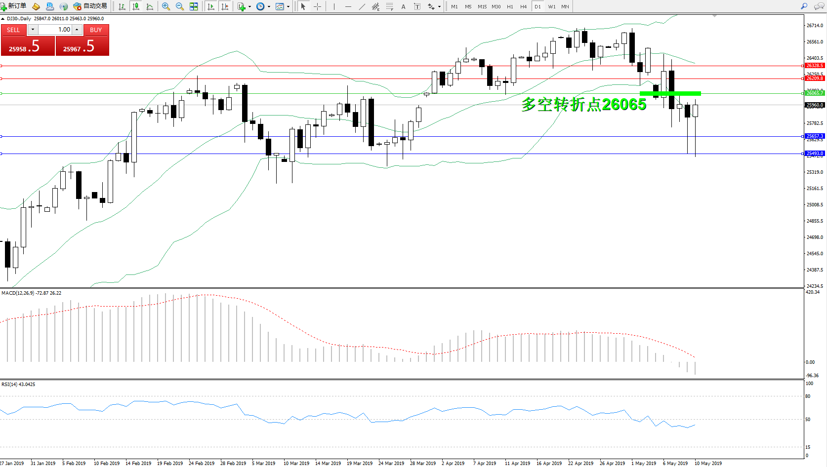 美国劳工部报告称,美国4月消费者物价指数(CPI)上升,但基本通胀保持温和,暗示美联储可能在一段时间内维持利率不变;此外,美国决定提高从中国进口商品的关税,引发了市场对美联储将在今年晚些时候降息的猜测。贸易争端加剧了人们对全球经济放缓的担忧,道琼斯指数收涨114.00点,涨幅0.44%,报25942.37点;美联储威廉姆斯:美国经济表现强劲,没有关于通胀压力的迹象,美国经济“形势非常好”,预计2019年GDP将持续性地增长2.25%。