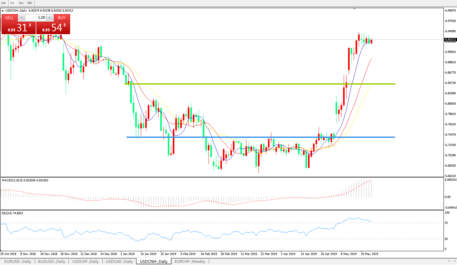 技术面简析:日线图均线呈有序多头排列看多,MACD在0轴上方运行且动能柱0轴上方持续放量,RSI超买区域小幅下行,汇价强力上攻后维持整理态势,预计短期汇价有进一步上行空间,中期重点关注中美贸易争端后续进展。