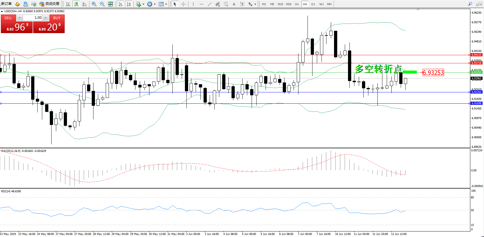 交易策略:6.93253下方看跌,目标6.92265、6.91698