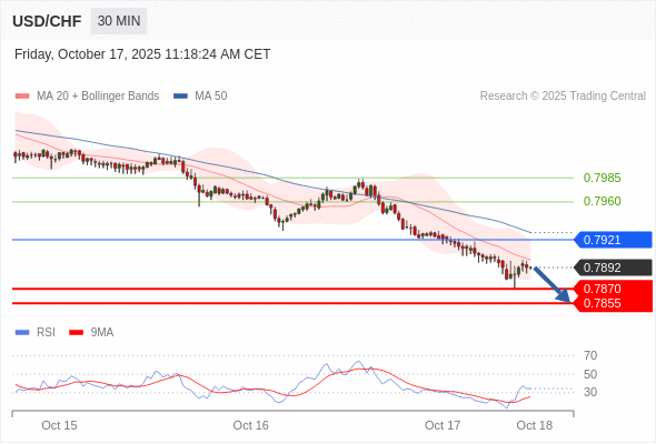 在 0.7940 之下,看跌,目标价位为 0.7875 ,然后为 0.7850 。