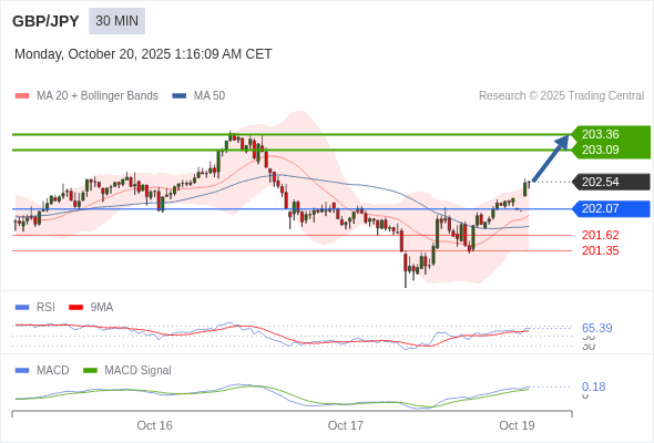 英镑/日元 当日内 : 看涨,当 202.07 为支撑位。