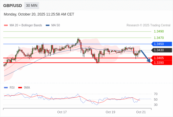 交易策略: 在 1.3450 之下,看跌,目标价位为 1.3405 ,然后为 1.3390 。