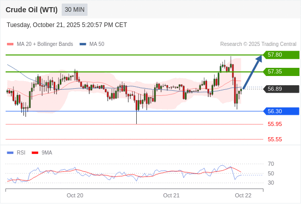 在 56.30 之上,看涨,目标价位为 57.35 ,然后为 57.80 。