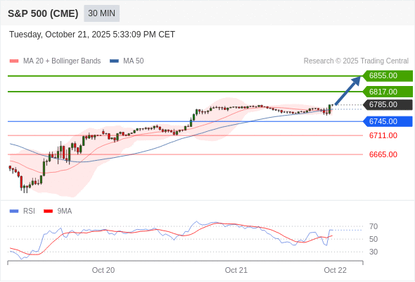 在 6745.00 之上,看涨,目标价位为 6817.00 ,然后为 6855.00 。