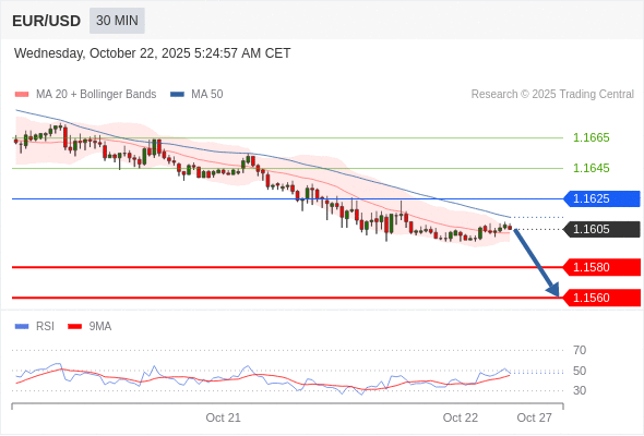 在 1.1625 之下,看跌,目标价位为 1.1580 ,然后为 1.1560 。
