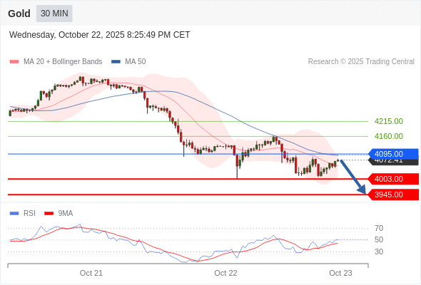 在 4095.00 之下,看跌,目标价位为 4003.00 ,然后为 3945.00 。