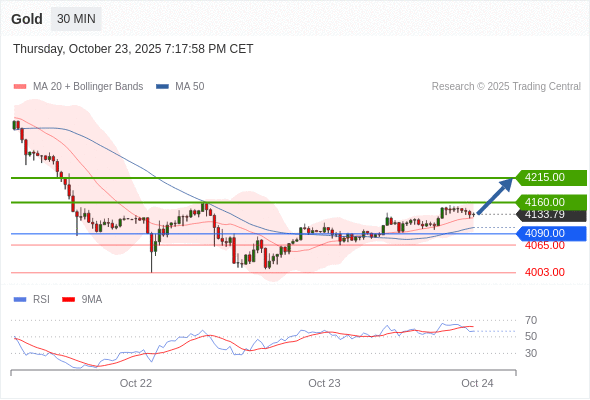 在 4090.00 之上,看涨,目标价位为 4160.00 ,然后为 4215.00 。