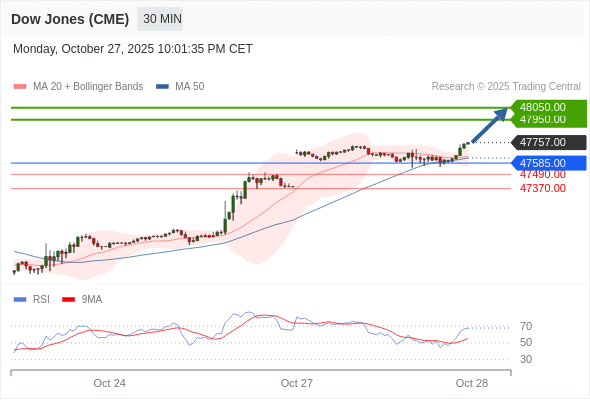 在 47585.00 之上,看涨,目标价位为 47950.00 ,然后为 48050.00 。