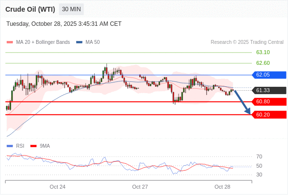 交易策略: 在 62.05 之下,看跌,目标价位为 60.80 ,然后为 60.20 。