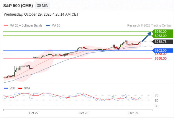 在 6902.00 之上,看涨,目标价位为 6963.00 ,然后为 6980.00 。