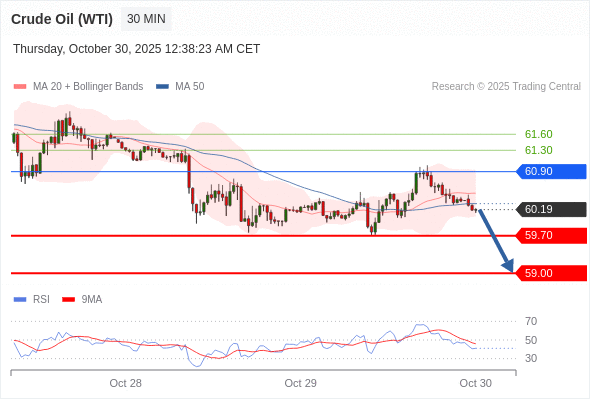 在 60.90 之下,看跌,目标价位为 59.70 ,然后为 59.00 。