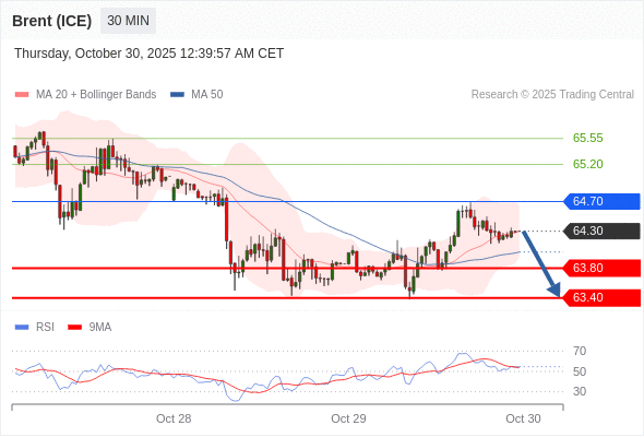 交易策略: 在 64.70 之下,看跌,目标价位为 63.80 ,然后为 63.40 。