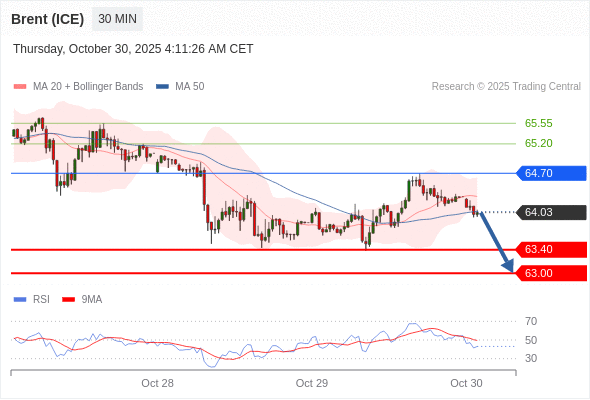 交易策略: 在 64.70 之下,看跌,目标价位为 63.40 ,然后为 63.00 。