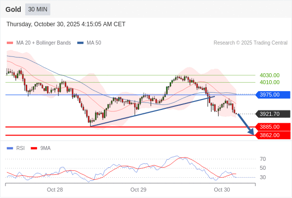 交易策略: 在 3975.00 之下,看跌,目标价位为 3885.00 ,然后为 3862.00 。