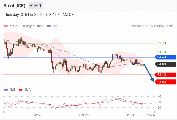 交易策略: 在 64.40 之下,看跌,目标价位为 63.40 ,然后为 63.00 。