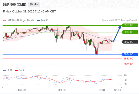 在 6854.00 之上,看涨,目标价位为 6930.00 ,然后为 6953.00 。