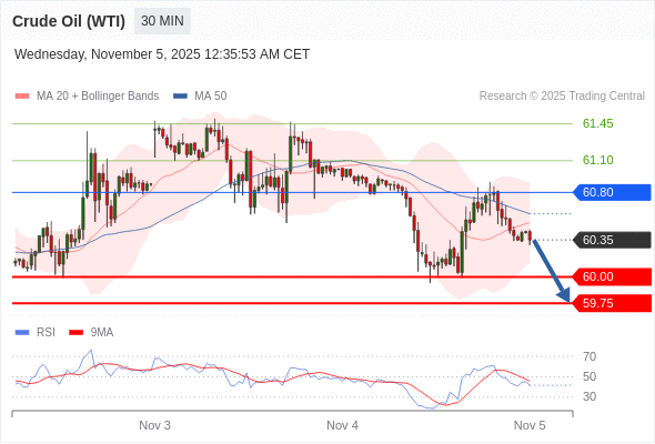 在 60.80 之下,看跌,目标价位为 60.00 ,然后为 59.75 。