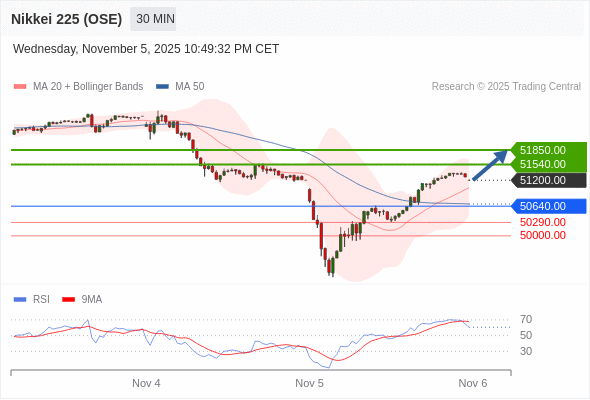日经225股指期货 (OSE) 当日内: 目标位为51540.00。
