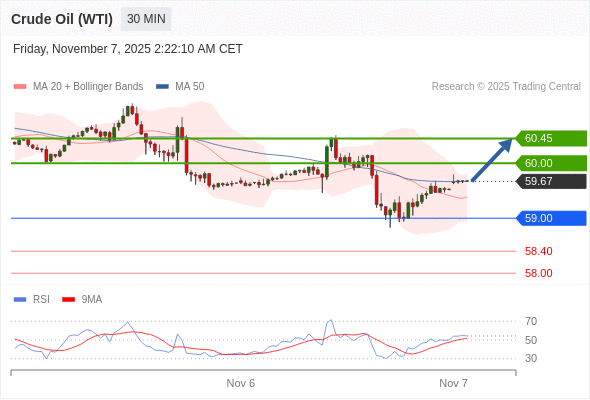 在 59.00 之上,看涨,目标价位为 60.00 ,然后为 60.45 。
