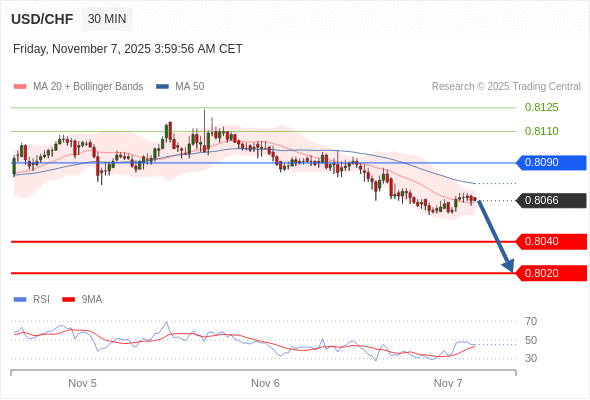 在 0.8090 之下,看跌,目标价位为 0.8040 ,然后为 0.8020 。