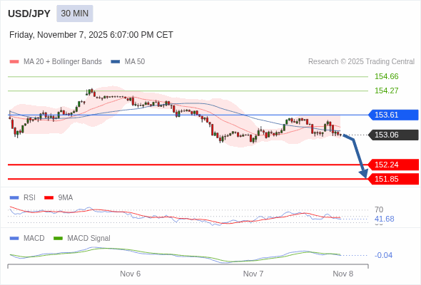 美元/日元 当日内 : 看跌,在 153.61 之下。