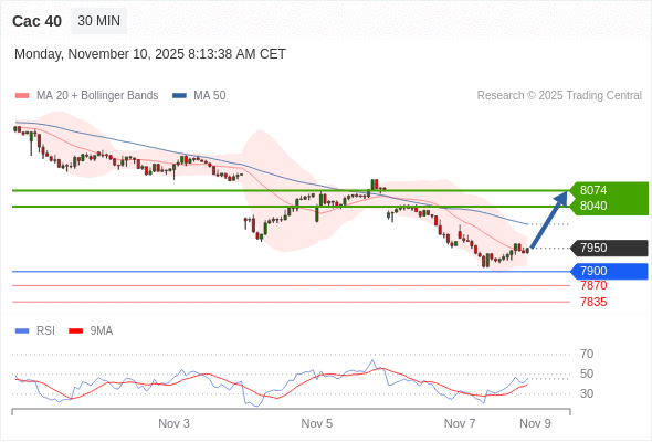 Cac 40 当日内: 超短线(当日内)支撑位在7900附近。