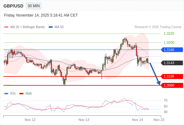 在 1.3180 之下,看跌,目标价位为 1.3105 ,然后为 1.3080 。