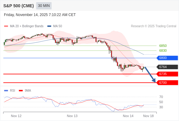 在 6800 之下,看跌,目标价位为 6735 ,然后为 6700 。