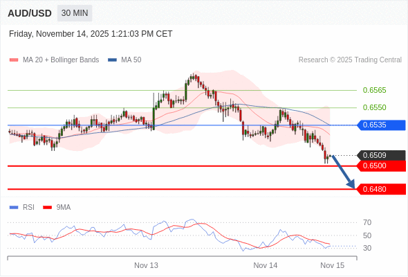 交易策略: 在 0.6535 之下,看跌,目标价位为 0.6500 ,然后为 0.6480 。