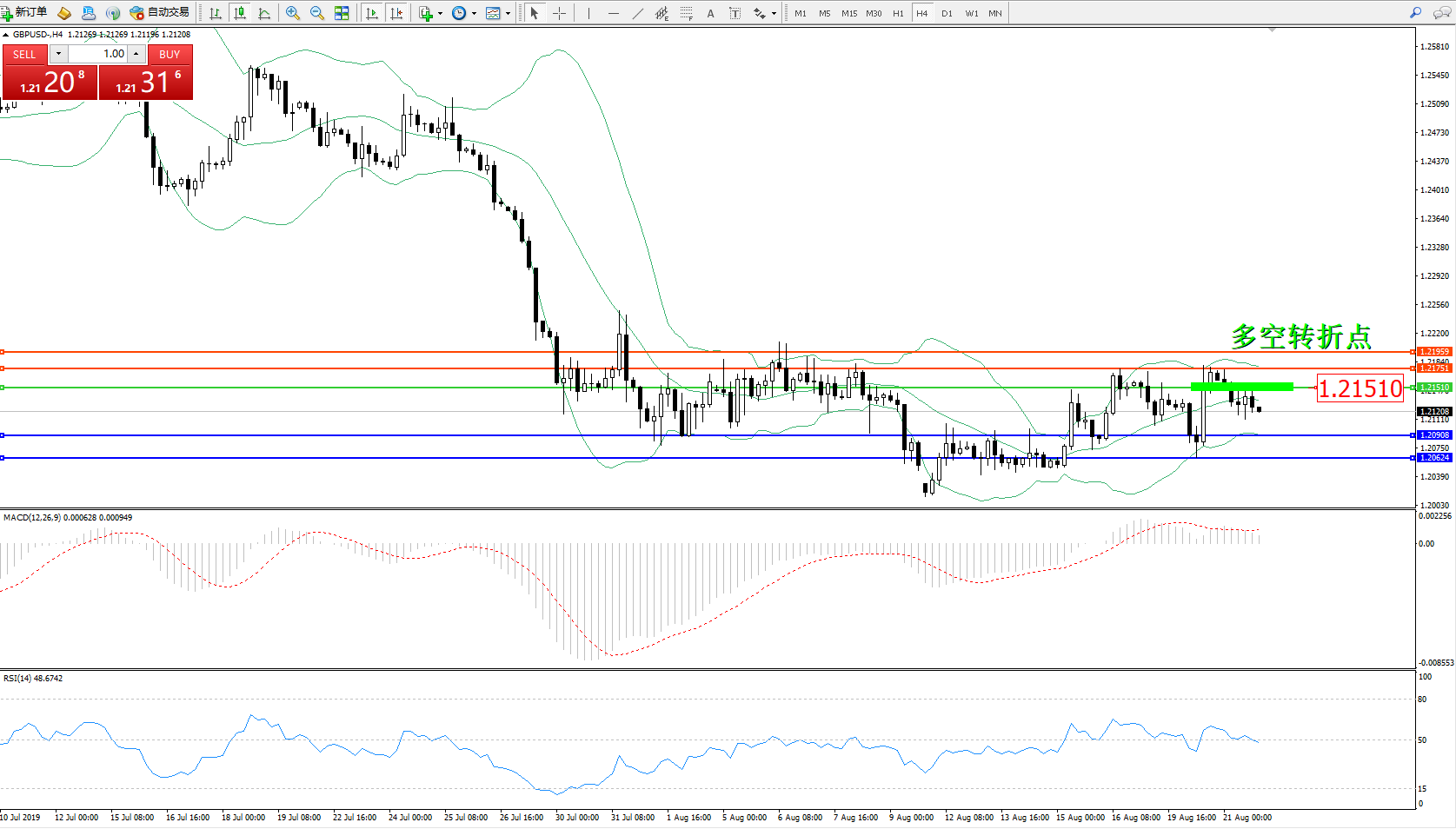 交易策略:1.21510下方看跌,目标1.20908、1.20624