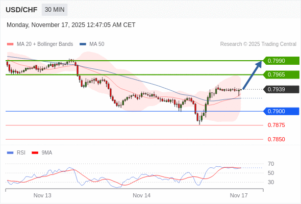 在 0.7900 之上,看涨,目标价位为 0.7965 ,然后为 0.7990 。