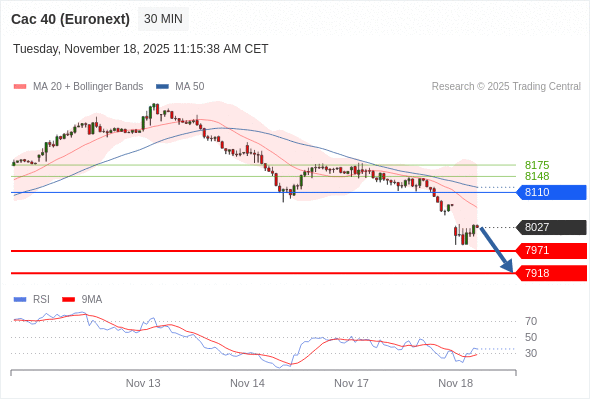 在 8110 之下,看跌,目标价位为 7971 ,然后为 7918 。