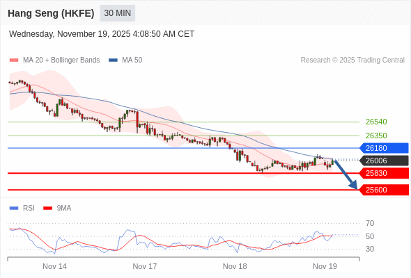 在 26180 之下,看跌,目标价位为 25830 ,然后为 25600 。