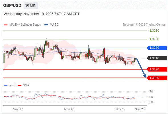 在 1.3170 之下,看跌,目标价位为 1.3120 ,然后为 1.3100 。