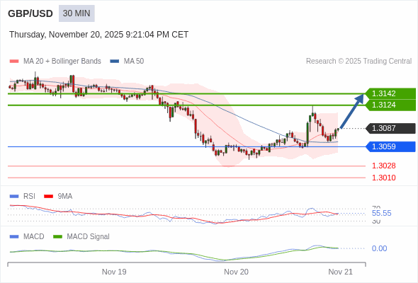 交易策略: 看涨,当 1.3059 为支撑位,目标定在1.3142。