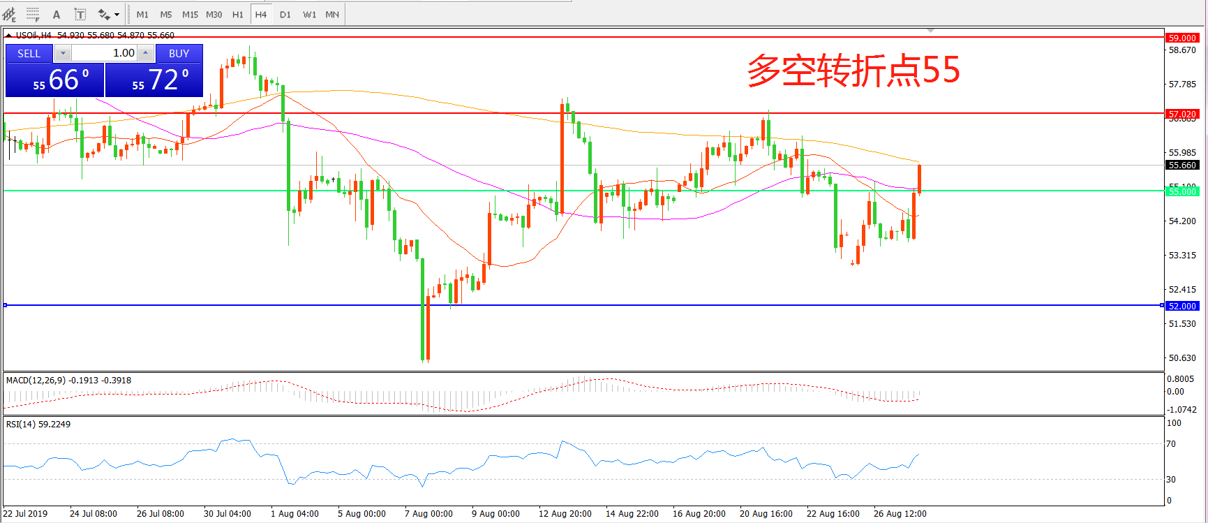 交易策略:在55.00之上看涨,目标57.00   59.00