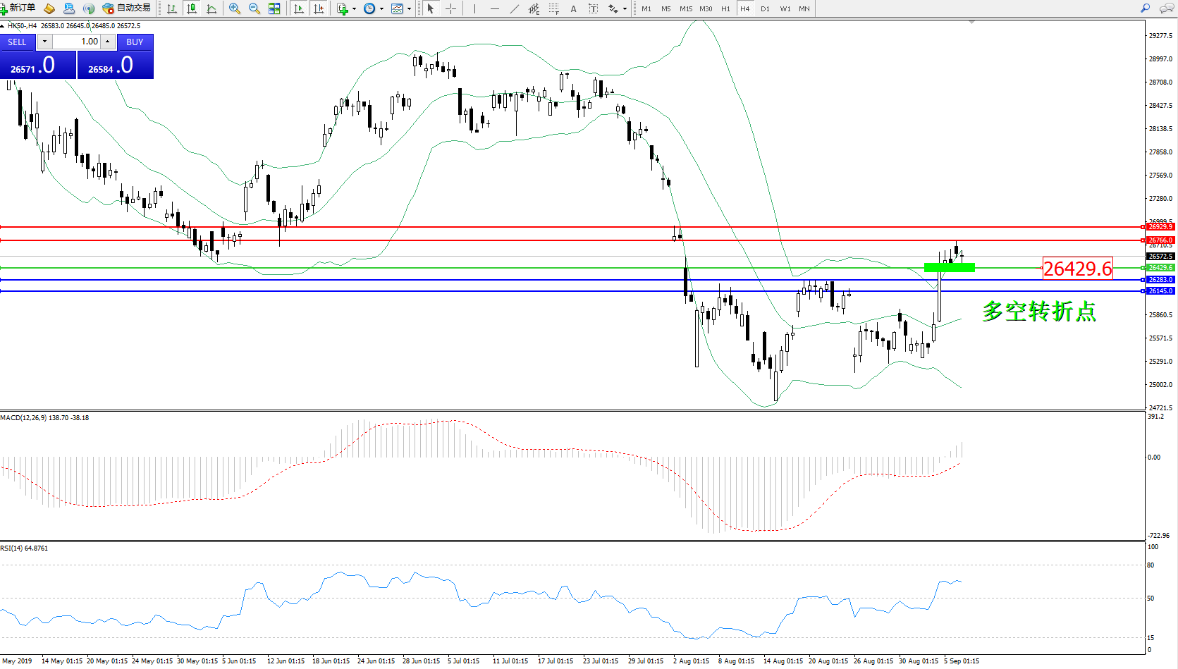 香港恒生指数96日(周五)收盘上涨175.23点,涨幅0.66%,报26690.76点;恒指表现反复收稳,在盘中曾一度下跌240点低见26283点,本地股绝地反弹后出现回压,是对市场构成震荡的原素,但受惠A股的持续走强,中资股继续有相对突出表现,内险股和内银股是目前的护盘推动主力。在全球央行倾向宽松政策的背景下,加上中美有望在10月初进行经贸高级别磋商,对于市场气氛都构成了提振作用。中国央行本周盘后宣布,为支持实体经济发展,降低社会融资实际成本,决定于916日全面下调金融机构存款准备金率0.5个百分点(不含财务公司、金融租赁公司和汽车金融公司)