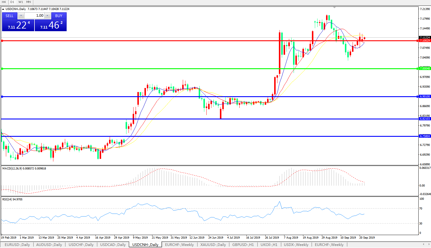 技术面简析:日图短期均线拐头上攻,汇价7.10关口附近整理,MACD逼近0轴且动能有再度放量迹象,RSI呈缓步走高态势,预计短期汇价将延续上行,上方重点关注7.20-7.30区间的压制;近期中美贸易谈判略有进展,须持续关注。