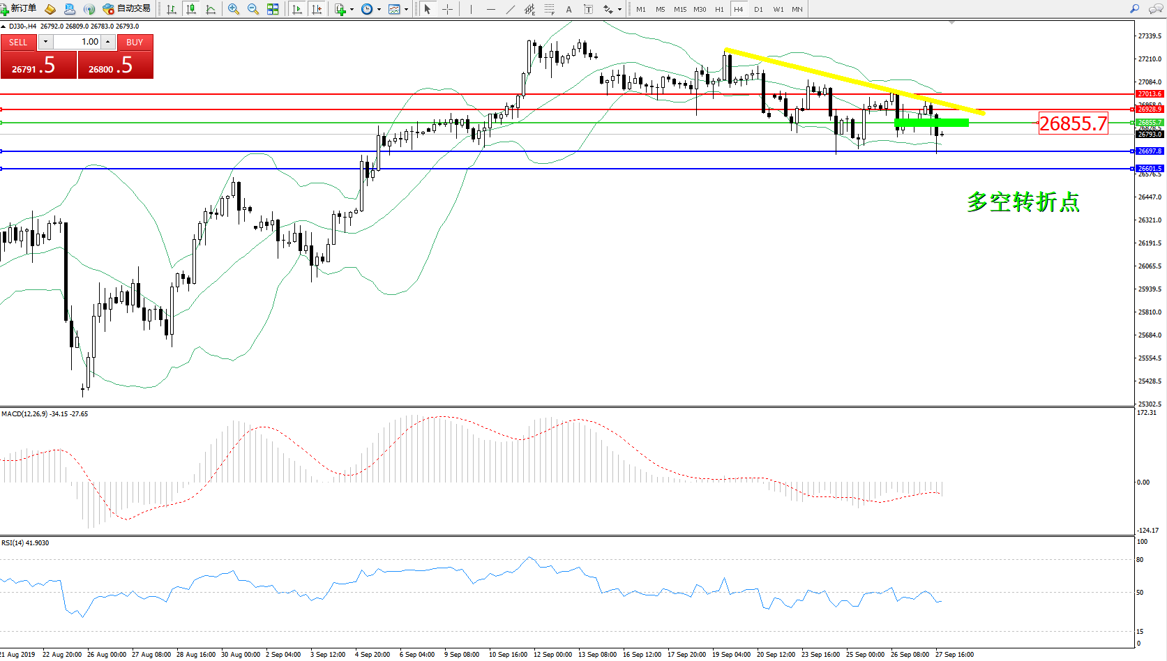 道琼斯指数927日(周五)收盘下跌70.90点,跌幅0.26%,报26820.25点。美国股市跌至三周低点,因紧张局势再度加剧。在本周的大部分时间里,股市都承受着压力,众议院周二开始对特朗普进行弹劾调查带来了最大的抛压。美国经济数据对道指几无影响,尽管数据显示8月个人收入和支出,以及耐用品订单初值都有所降温;只是美东时间上午11点后指数一度小幅下挫,因有关贸易局势的相关报道。