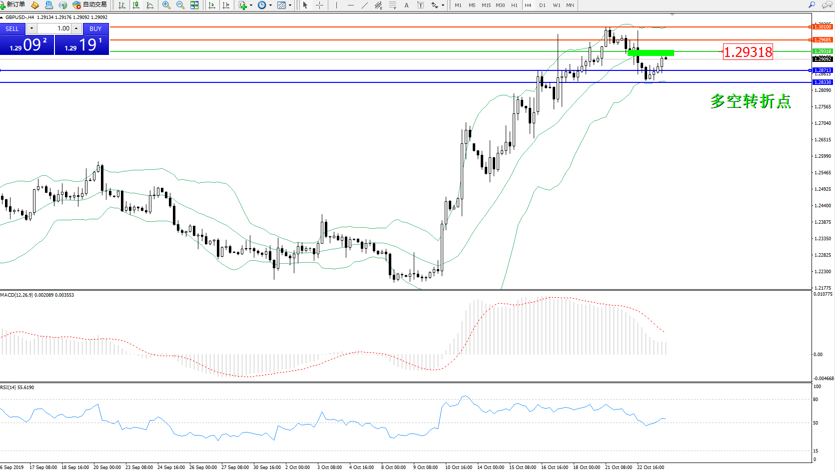 交易策略:1.29318下方看跌,目标1.28713、1.28330