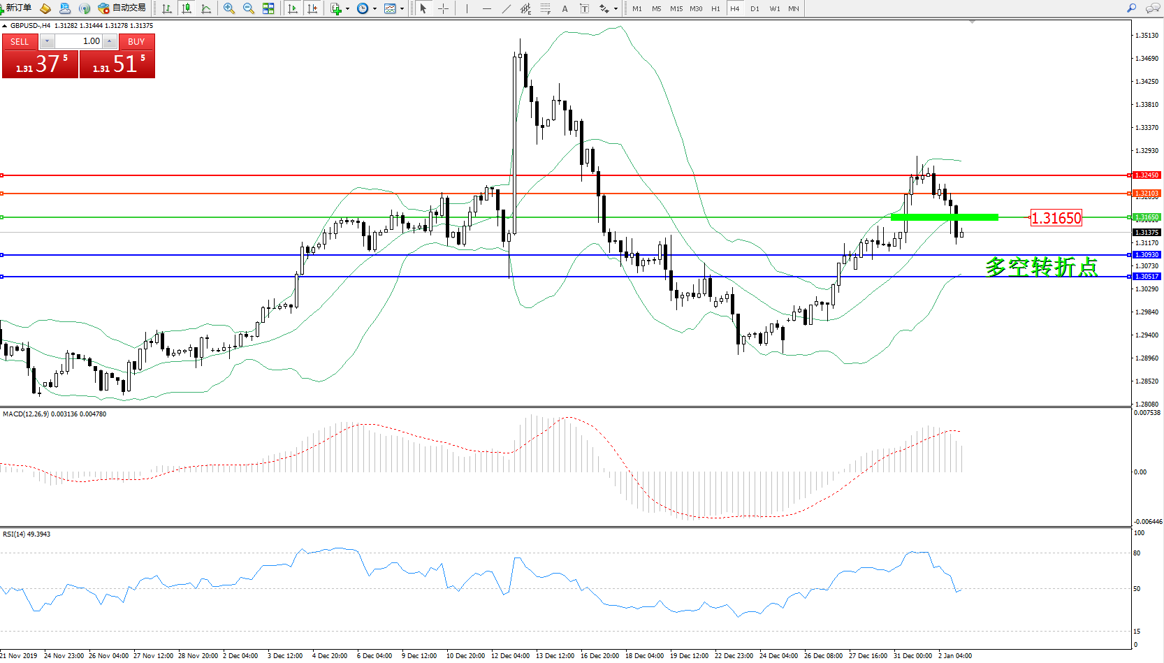 交易策略:1.31650下方看跌,目标1.309301.30517
