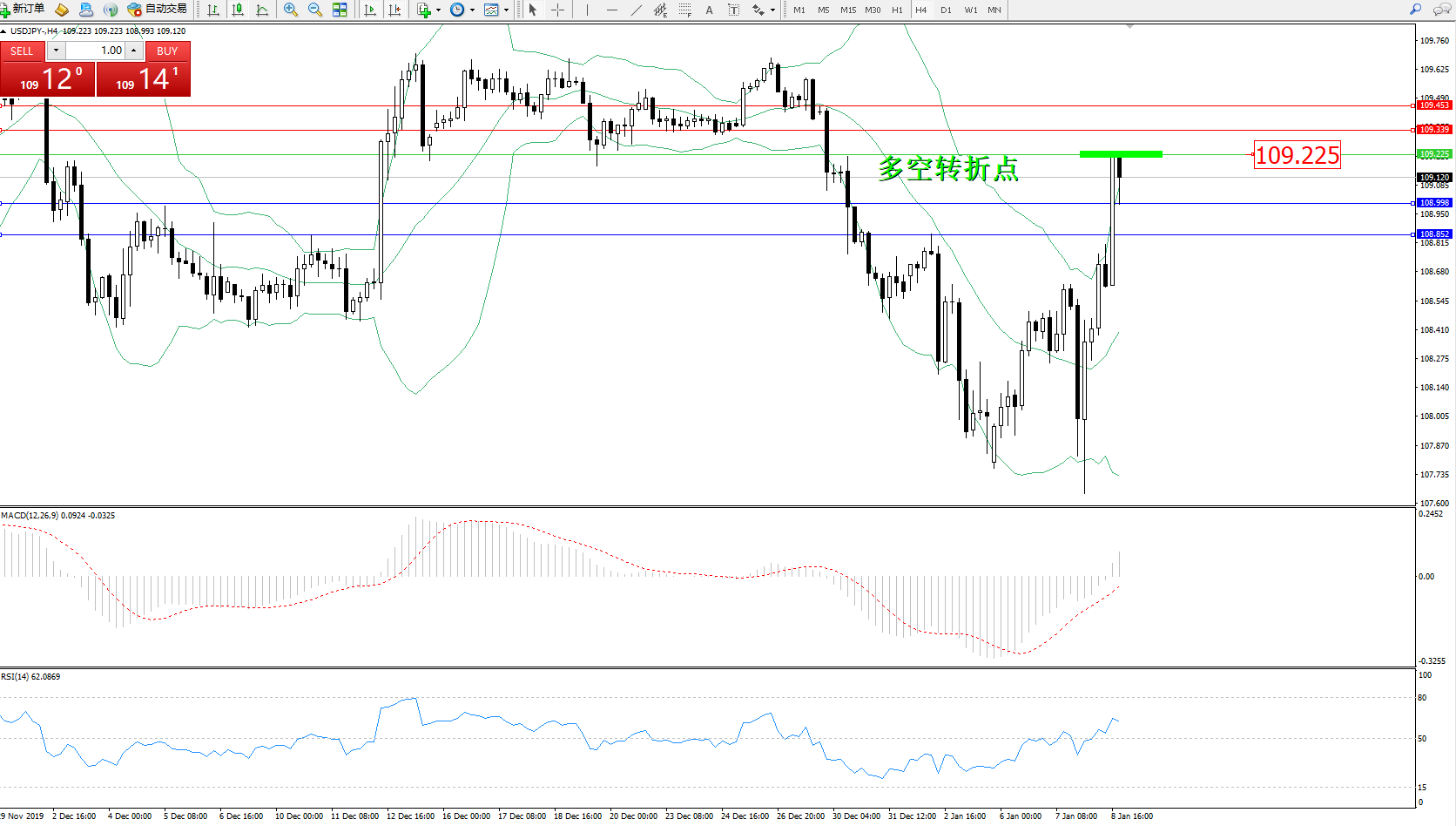 美元兑日元现报109.13,涨0.64%;避险需求大增令日元大涨,因伊朗袭击美军基地,但随着更多消息出现,伊朗导弹击中区域没有美国人,伊拉克方面也伤亡有限,投资者认为双方表现得较为克制,因此美伊进一步爆发冲突的可能性较低,也非常有限,因此日元再度大幅回落。