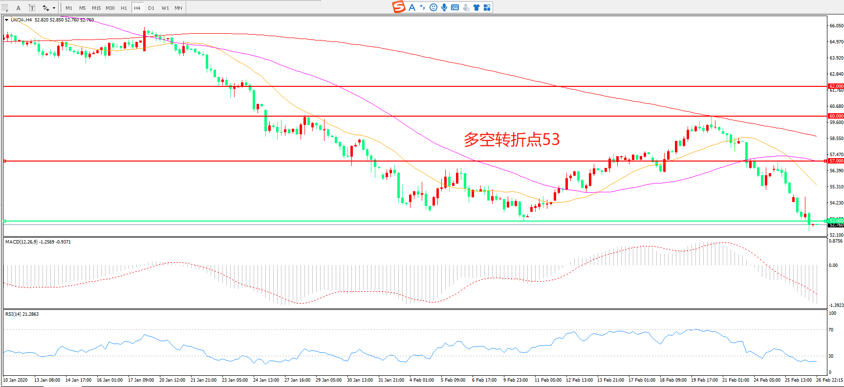 多空转折点:57.00