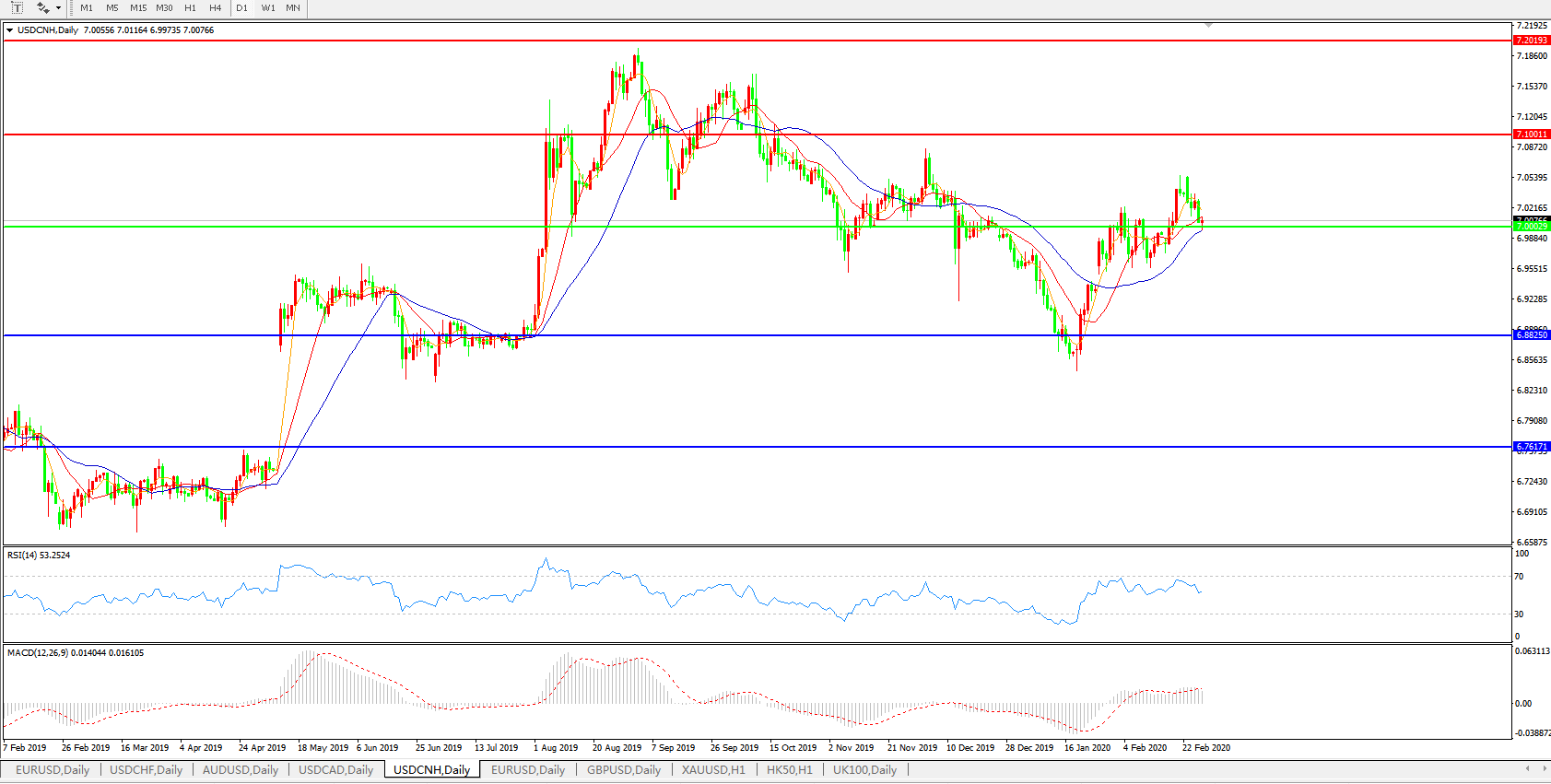 美元兑人民币USDCNH    日线图: