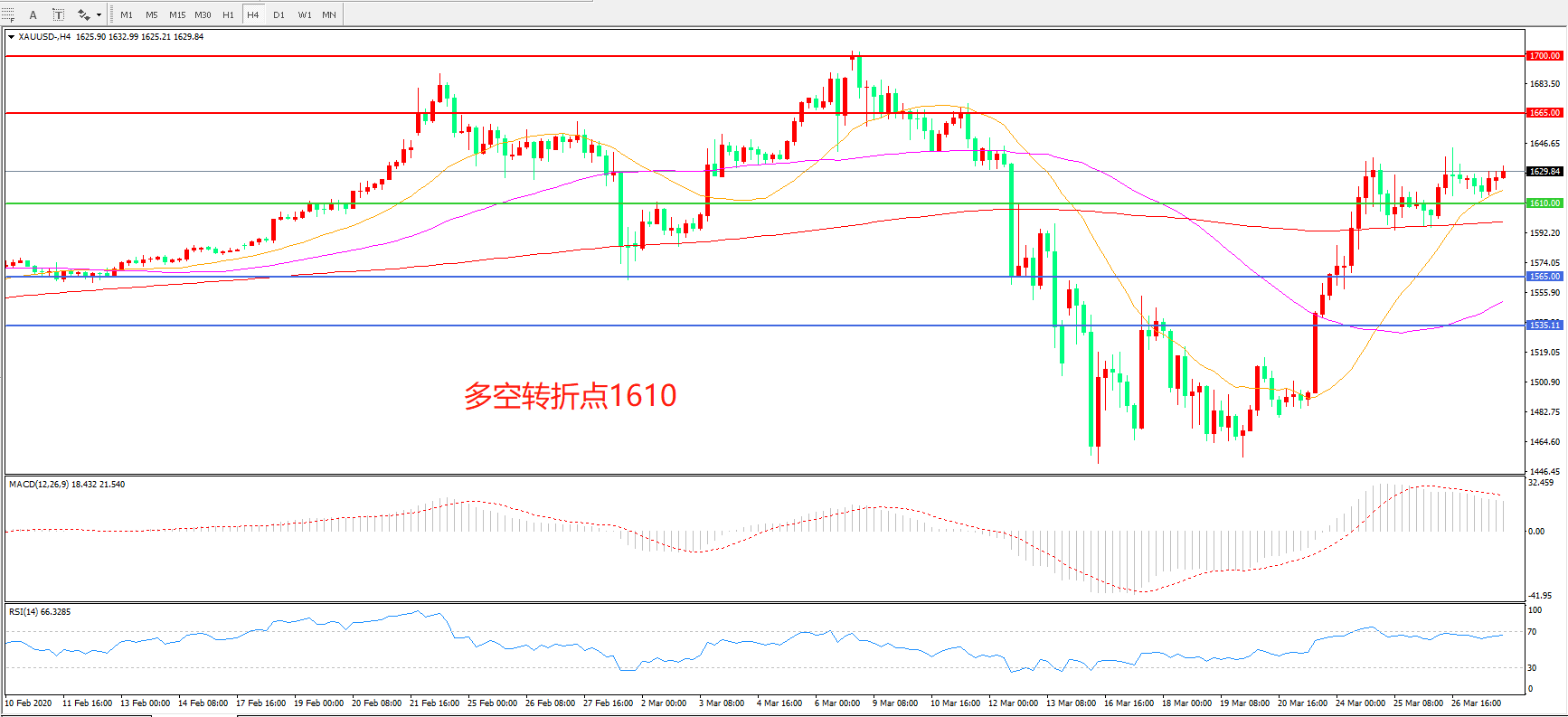 备选策略:在1610.00之下看跌,目标1565.00 1535.00