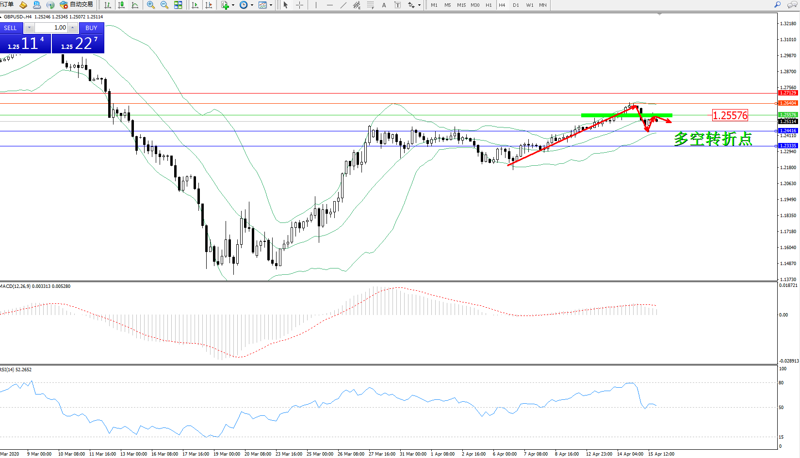 备选策略:1.25576上方看涨,目标1.26404、1.27129