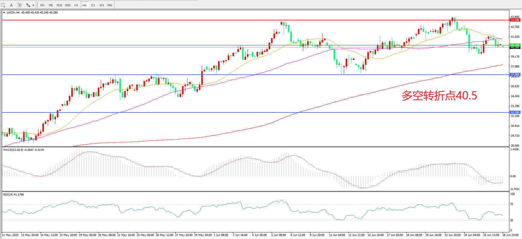 交易策略:  在40.50之下看跌,目标37.00      32.50