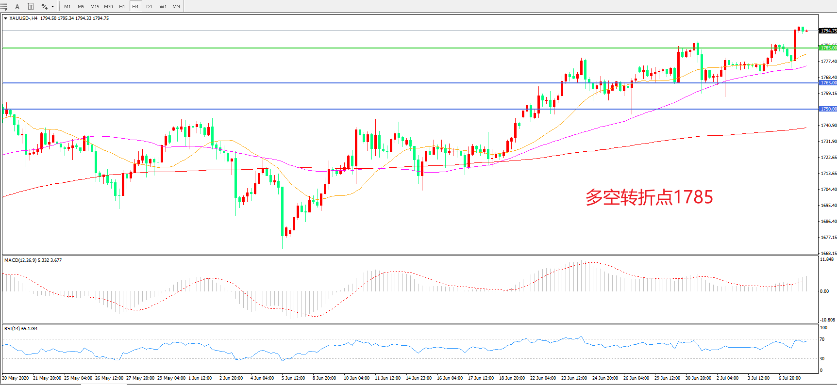 交易策略:在1785.00之上看涨,目标1800.00   1820.00
